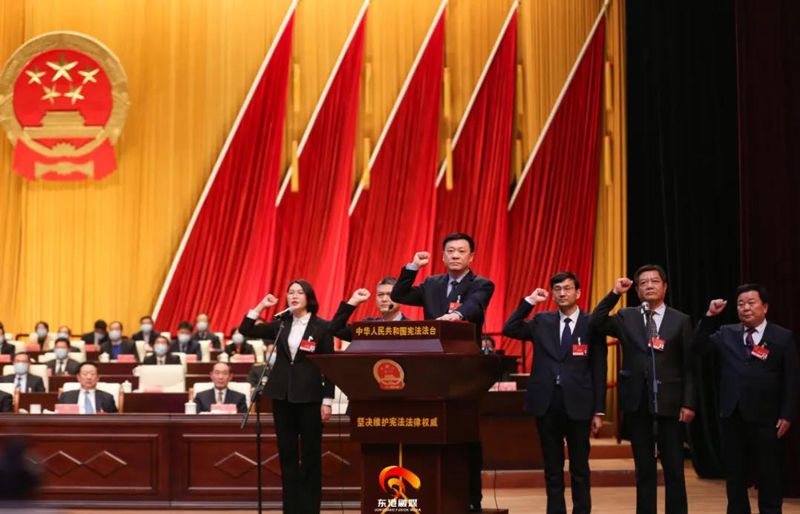 大會(huì)舉行憲法宣誓儀式。新當(dāng)選的區(qū)監(jiān)察委員會(huì)主任、區(qū)人大常委會(huì)副主任、委員集體向憲法宣誓。